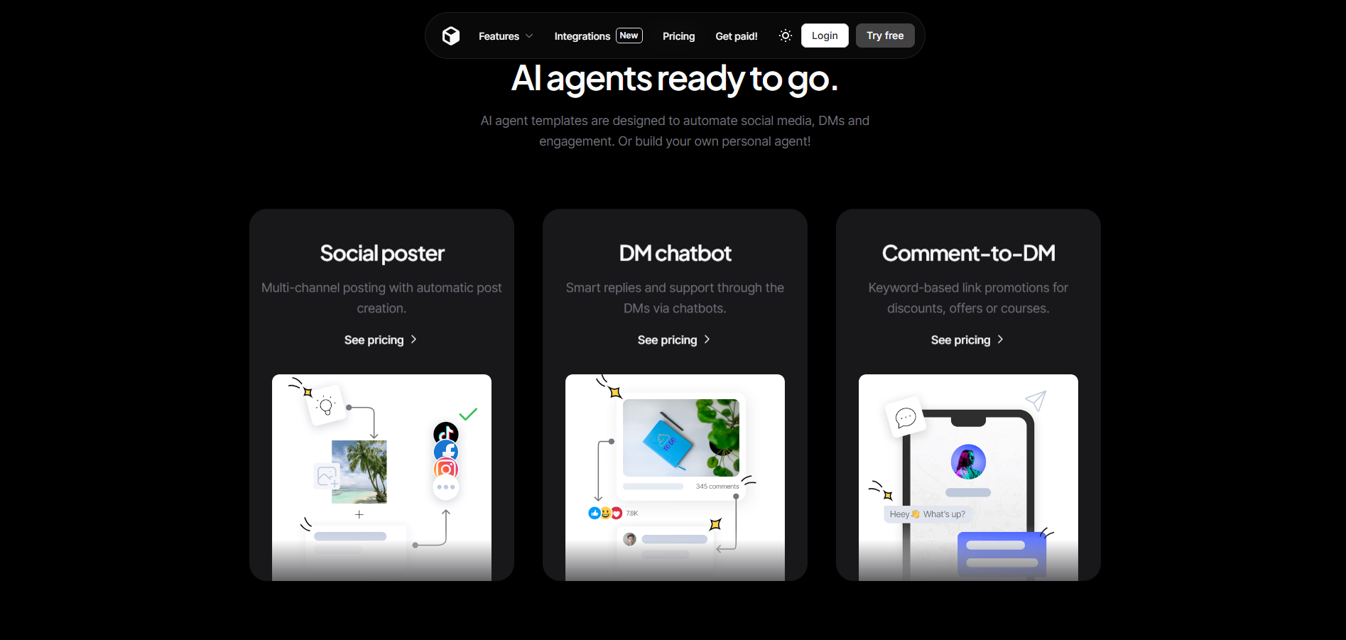 AI agent templates are designed to automate social media, DMs and engagement.